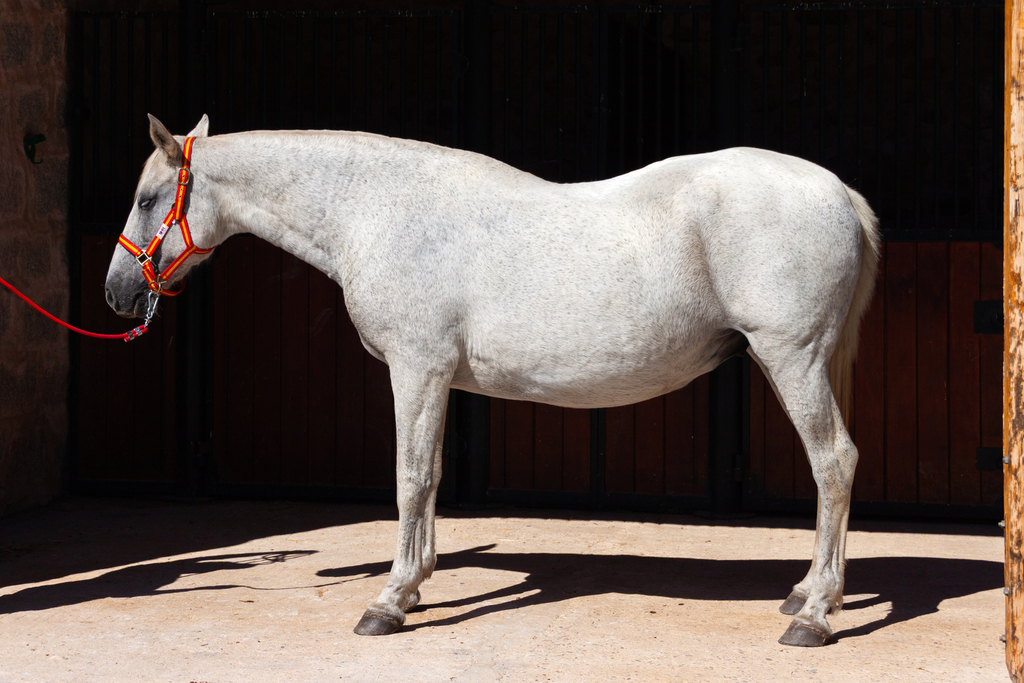 Yegua Pura Raza Española de capa torda, nacida el 2 de enero de 2001. Con una vida forjada en libertad y en contacto con el campo, es un ejemplar de carácter noble y una presencia que refleja lo mejor de la raza española.